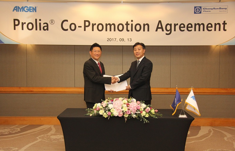 이번 계약은 국내 골다공증 영역에서 생물학적 제제로서는 다국적사와 국내사가 최초로 체결하는 파트너십으로, 오는 13일부터 암젠코리아는 종합병원에서, 종근당은 준종합병원 및 의원에서 프롤리아의 영업과 마케팅을 공동으로 담당하게 됐다. 이번 공동판매 체결을 계기로 세계적인 생명공학 기업인 암젠의 기술력과 국내 시장에서 입증된 종근당의 오랜 영업력을 결합해 국내 시장 확대에 시너지 역할을 할 것으로 양사의 기대를 모으고 있다.